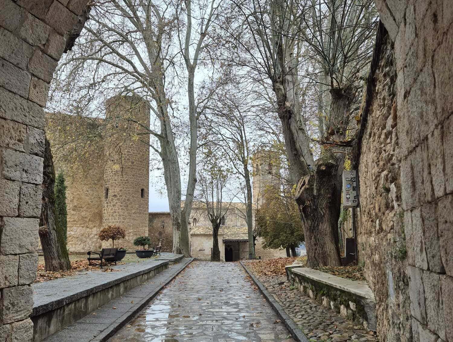 Comenzaremos la visita frente a la Puerta de la Cadena, antigua entrada de los viajeros que llegaban desde tierras del norte, como Atienza, y una de las puertas medievales mejor conservadas de la muralla. Desde allí nos dirigiremos a la Iglesia de San Felipe, una hermosa construcción del siglo XIII que muestra la transición del estilo románico al gótico. Después nos adentraremos en el casco antiguo, atravesando la pintoresca Plaza de Herradores para llegar hasta la Fuente Blanquina, ya citada en documentos del siglo XVI. A sus espaldas descubriremos el lavadero público, de principios del siglo XX, que aún conserva todo su encanto. Nuestro paseo nos llevará por la Calle Mayor hasta la Plaza del Coso, corazón de la villa, donde se alzan la antigua cárcel de Carlos III (hoy Oficina de Turismo), las bellas fuentes barrocas y la entrada a las célebres cuevas árabes. Más adelante alcanzaremos el recinto amurallado del castillo, donde podremos contemplar el patio de armas y disfrutar de las magníficas vistas del valle del Tajuña. Allí también se encuentra el santuario de la Virgen de la Peña, a la que los brigueños profesan una gran devoción, y conoceremos el motivo de su fervor. Para concluir, regresaremos a la Puerta de la Cadena, pasando junto a la Plaza de Toros y admirando la imponente silueta de la antigua Fábrica de Paños, hoy convertida en un elegante hotel balneario.